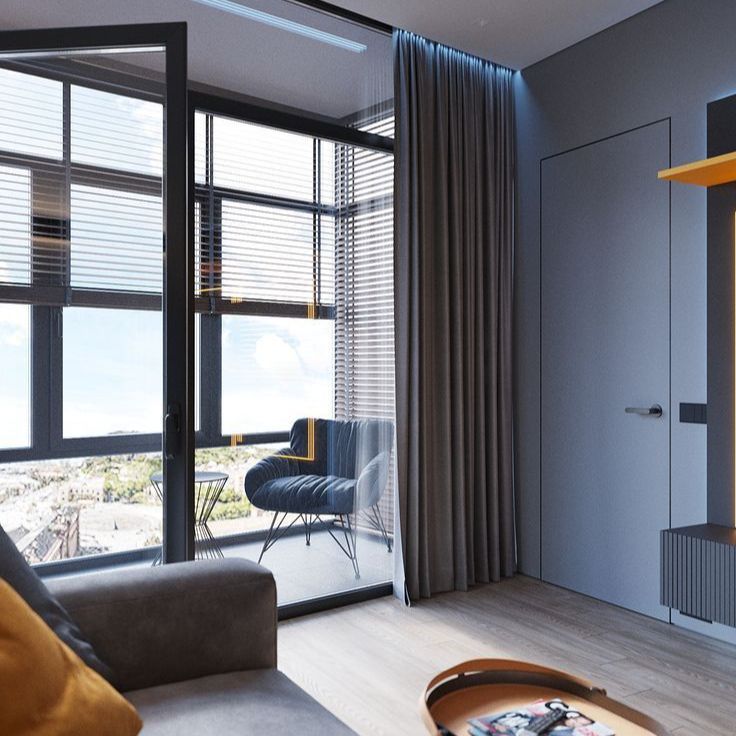 Раздвижные двери на балкон впустят максимум света и воздуха в помещение за счет прозрачности конструкции и большой площади остекления. Помещение визуально «вырастает» до балконного ограждения и кажется просторнее.